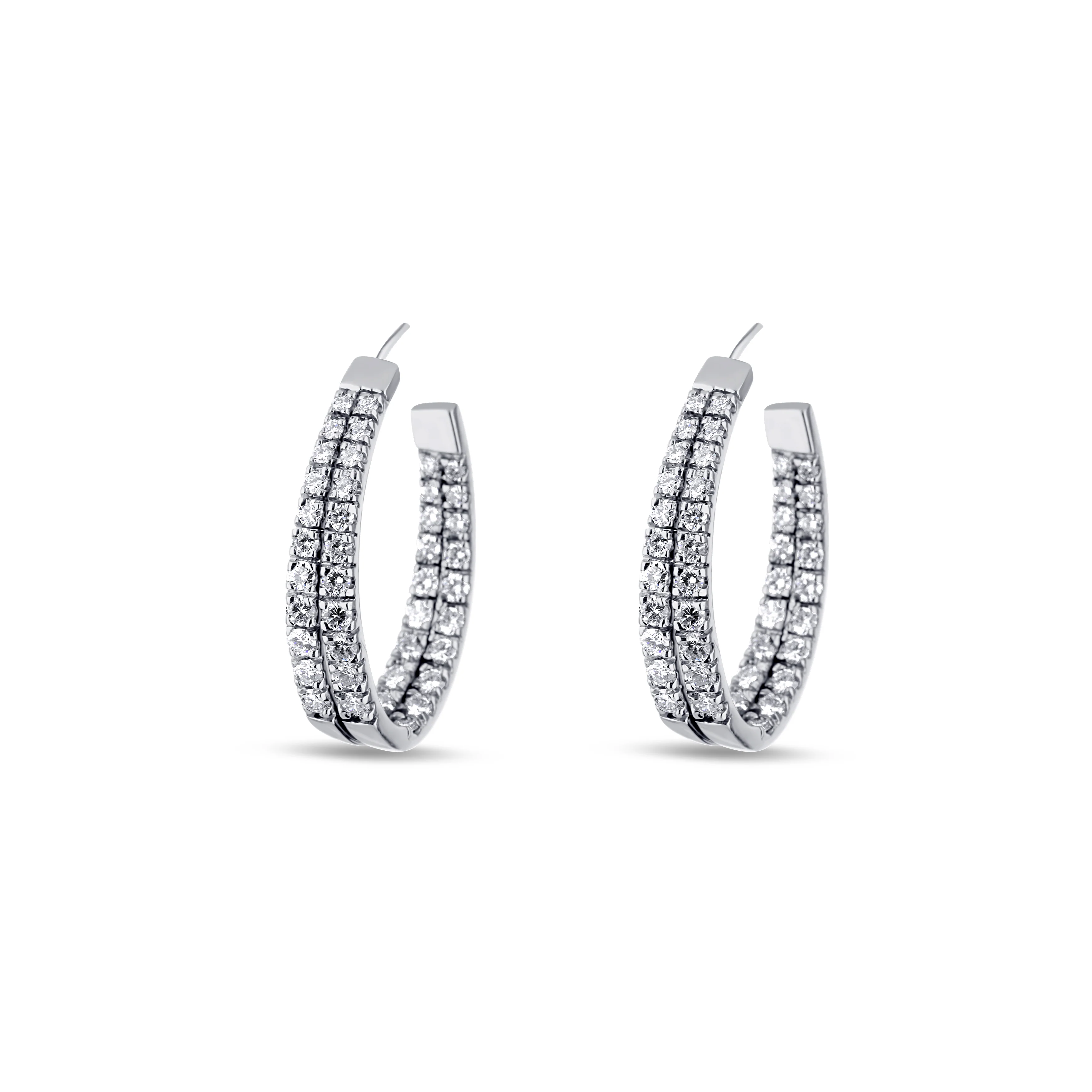 14K White Gold Diamond Double-Row Oval Inside-Outside Hoops—