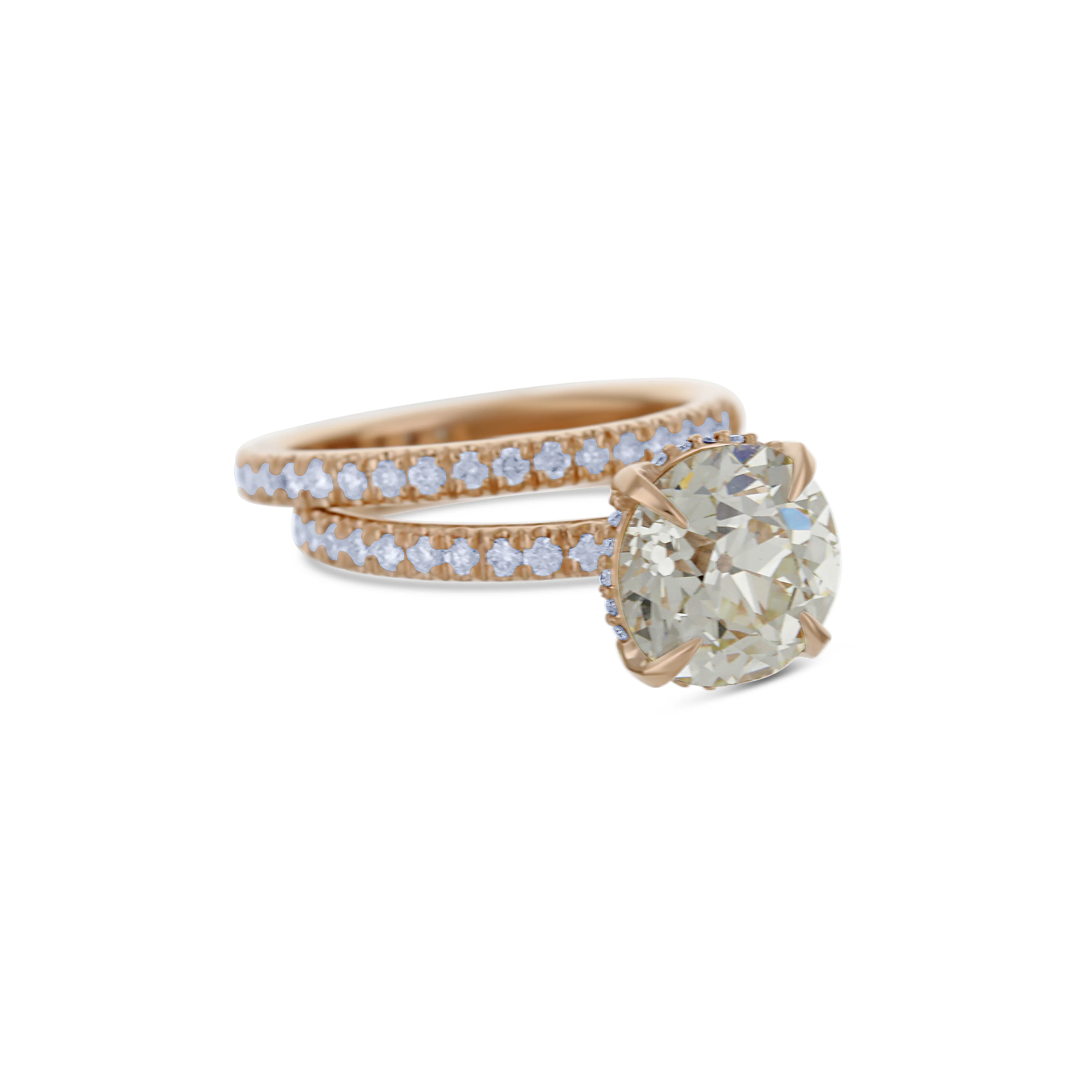 18K Rose Gold Bridal Set With Gia Certified Old European Brilliant Round Diamond Center Stone—