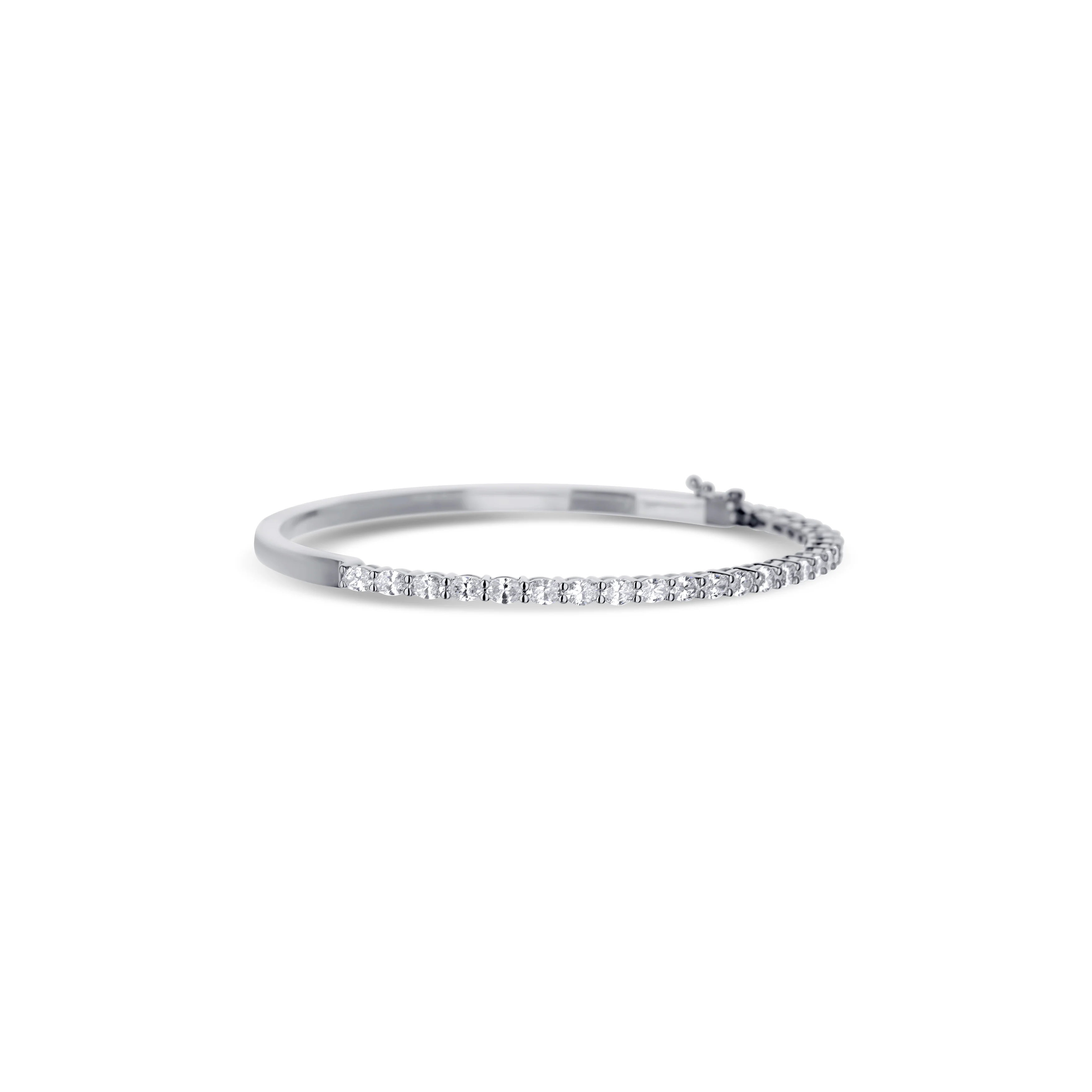 18K White Gold Half Oval Diamond Hinged Bangle